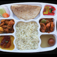 Chicken Curry, Mix Veg, Jeera Rice, Butter Naan, Salad, Pickle, Gulab jamun
